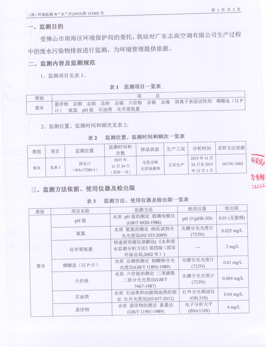 安全環保資料公布-廢水監測報告-第4季度